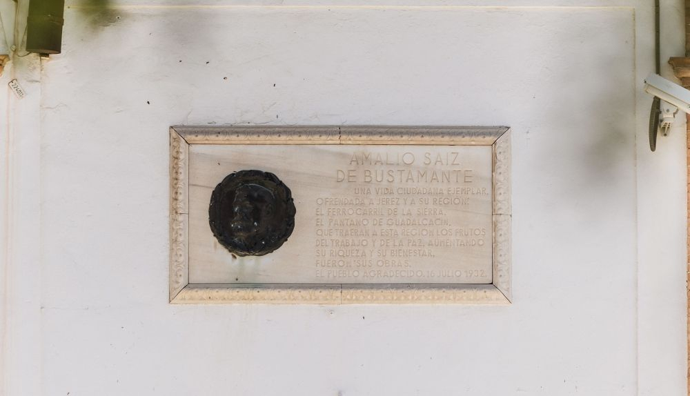 En la estación jerezana se conserva una placa, colocada hace ahora 90 años, que recuerda los logros de este jerezano ilustre. Un recuerdo en mármol cuyo texto dice: “Una vida ciudadana ejemplar ofrendada a Jerez y a su región. El ferrocarril de la Sierra, el pantano de Guadalcacín, que traerán a esta región los frutos del trabajo y de la paz, aumentando su riqueza y su bienestar, fueron sus obras”.