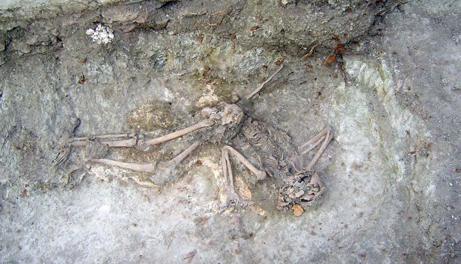 Los esqueletos de las víctimas están, muchos, "en posiciones muy forzadas en una amalgama en la que se entrecruzan las extremidades superiores con las inferiores". Algunos bocabajo. La cultura material queda relegada a botones, hebillas, restos de ropa, enganches de tirantes y suelas de zapatos hechas con trozos de neumático.