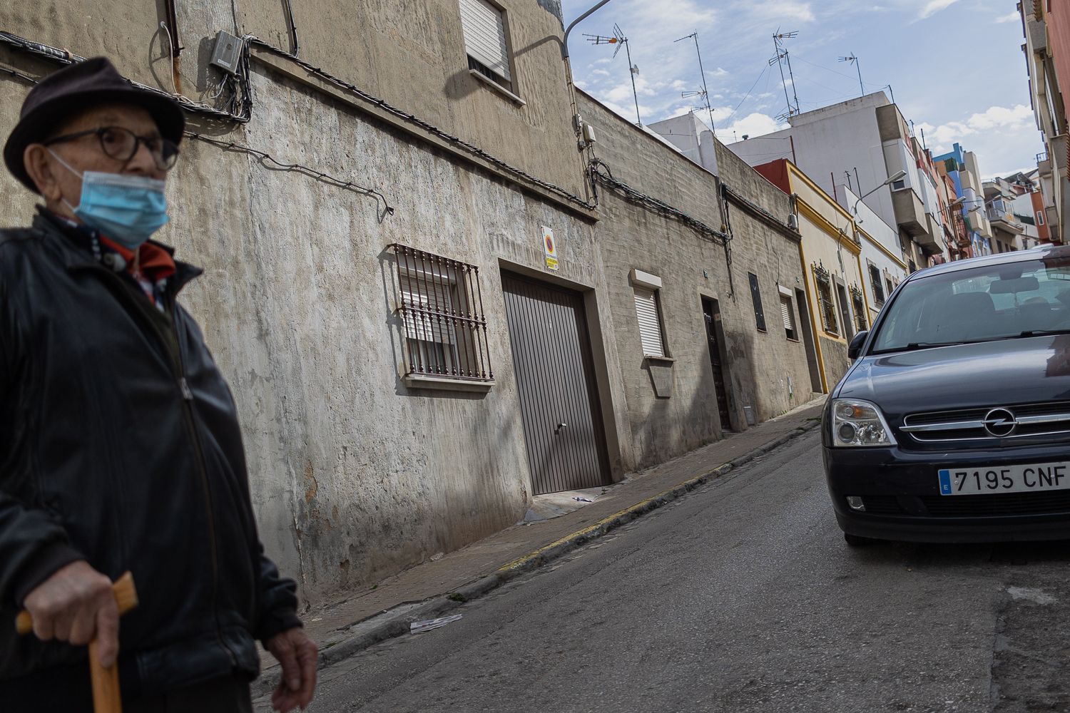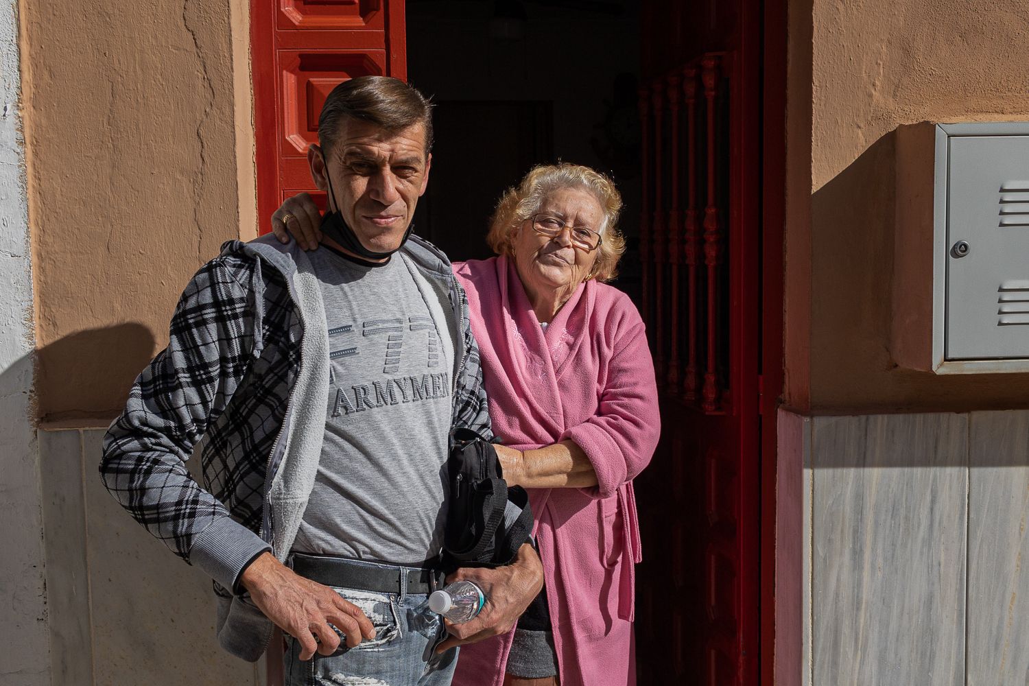 “La gente vino tras aquella oleada migratoria a trabajar, y no había vivienda. Hoy otros migrantes hacen lo mismo”, explica Moriche mientras nos aproximamos a una de las zonas más viejas de la barriada. Allí se asoman Javier y Antonia, que nos saluda desde su casapuerta.
