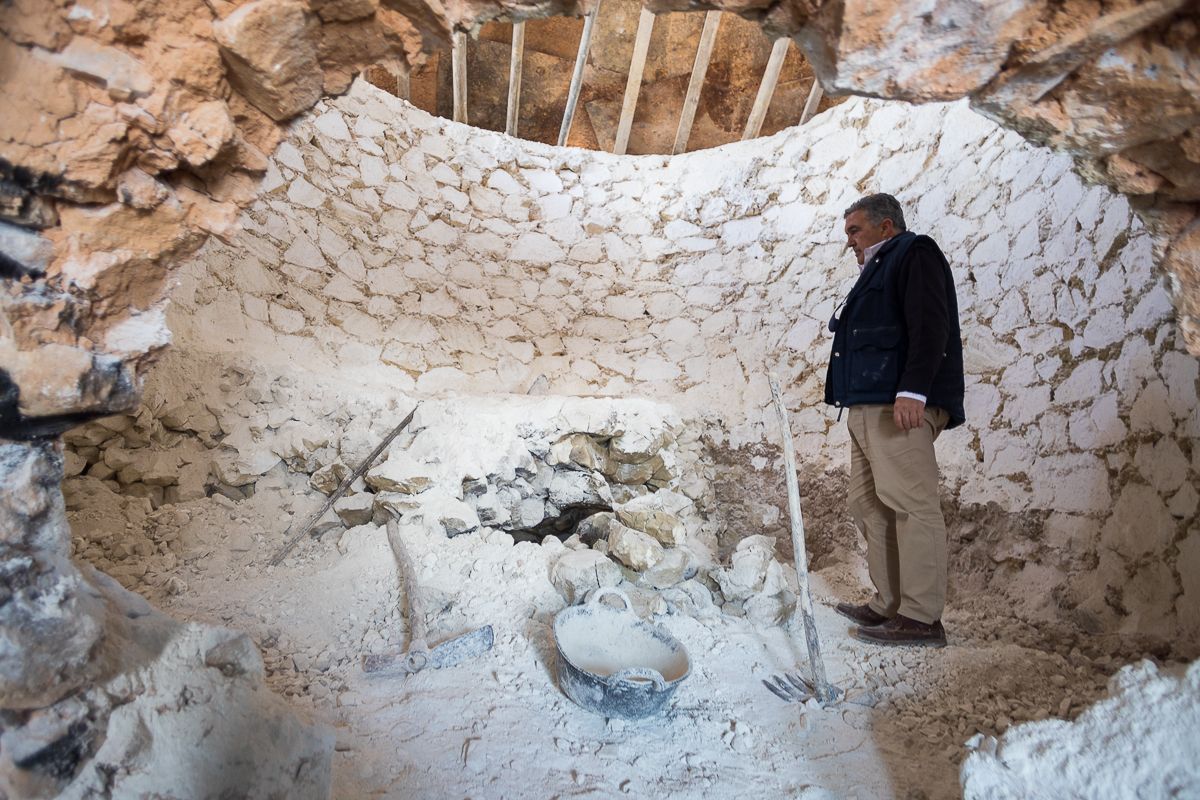 El horno de cal tiene aspecto de cabaña de piedra en su parte superior. Cuando se termina de llenar, se cubre con arcilla y barro, para evitar que se escape el fuego. Con leña de olivo se alimenta, a razón de unos 40.000 kilos diarios, durante las dos semanas aproximadas que dura la cocción. “La piedra caliza la transformamos así en cal viva”, cuenta Gordillo sobre un proceso de fabricación que es ecológico y respetuoso con el medio ambiente. “La huella de carbono es casi nula, emitimos CO2 pero también lo eliminamos, al contrario que otros materiales de construcción”, relata.