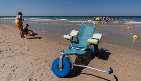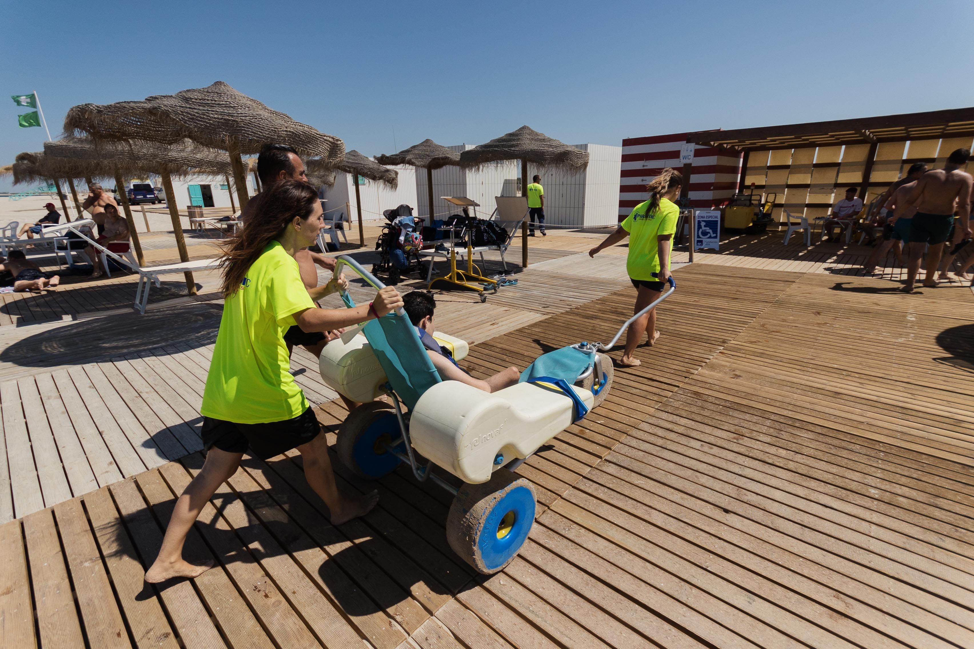 Mientras algunos auxiliares se movilizan para que una de estas personas pueda disfrutar de un baño en el mar, el responsable de este módulo cuenta que esa misma semana había acudido una mujer, de apenas 30 años, enferma de ELA. Esta mujer, sevillana, llevaba ocho años sin poder visitar una playa. Al ver las facilidades que tenía allí, se puso a llorar de alegría.