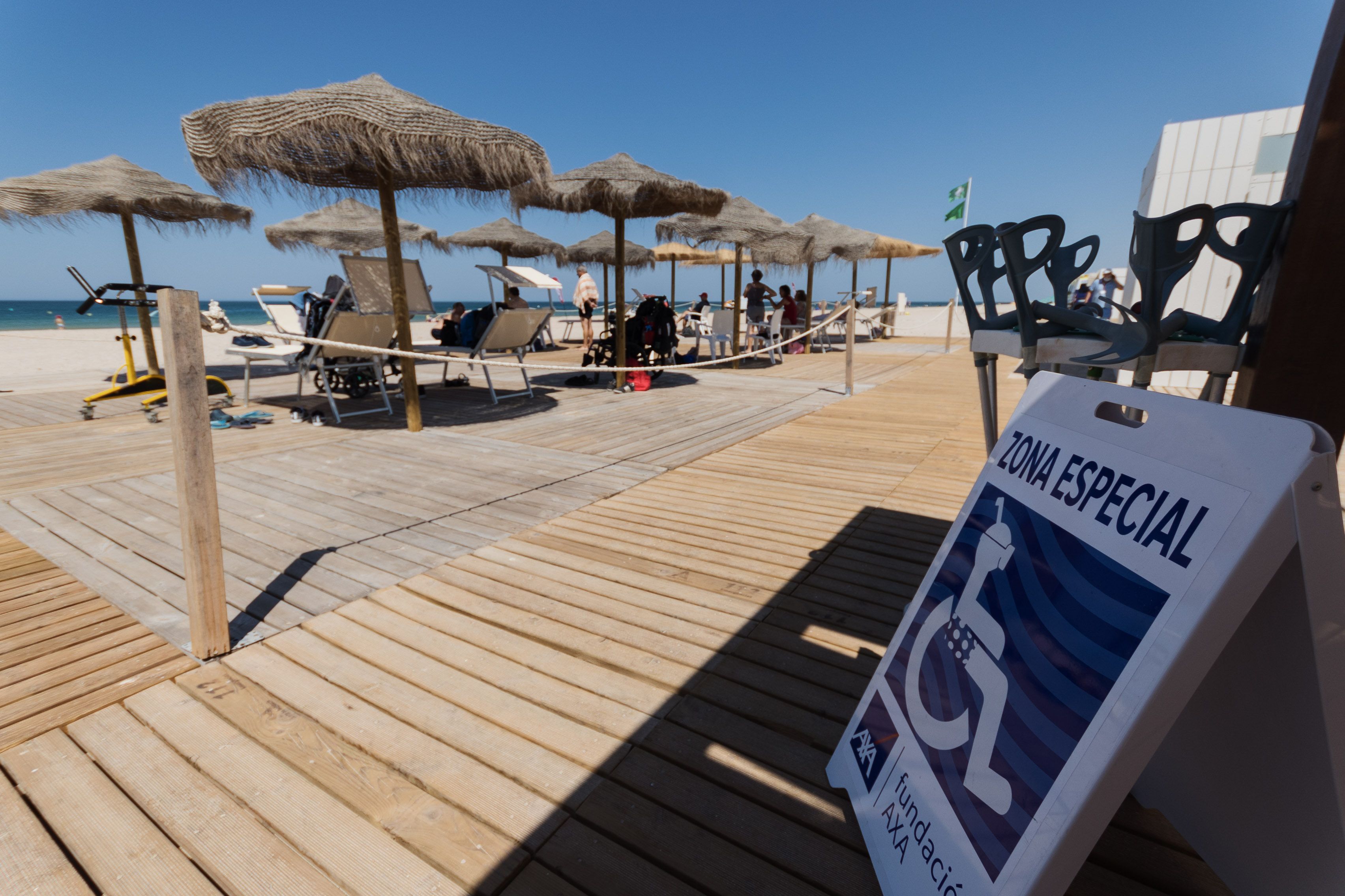 Durante la realización de este reportaje, el grueso de los usuarios pertenece a Afanas, de Cádiz. La mayoría son menores. En sus rostros se les ve disfrutar. Una de las monitoras del grupo cuenta que el descubrimiento de esta zona y el equipamiento del que disponen les ha cambiado la planificación de cada semana, "venimos tres días a la semana porque está es la actividad que más les gusta". Un pequeño vehículo facilita el desplazamiento para el que lo necesite. Por la tarima hay juegos y bromas. El levante sopla, pero les impide disfrutar.