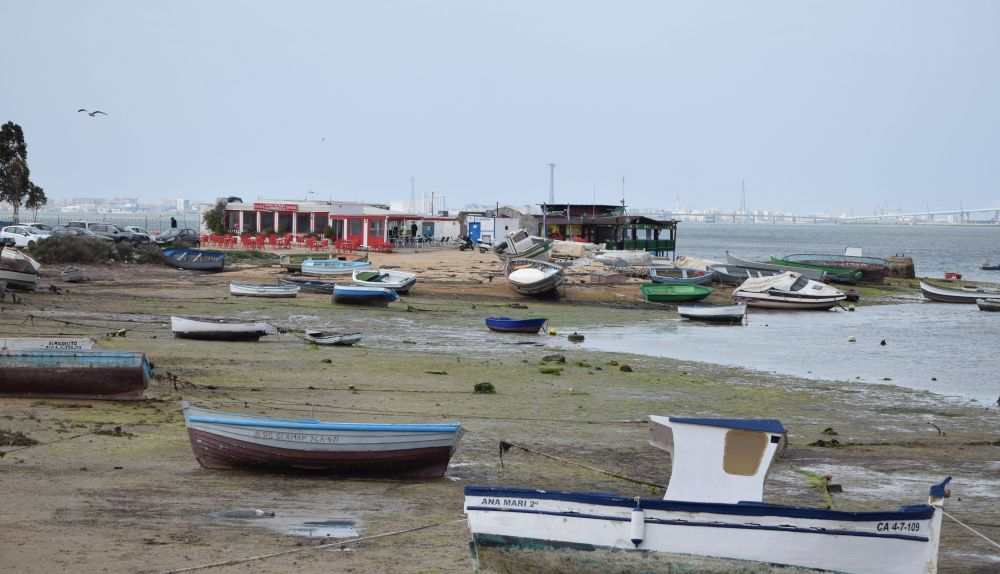 Este balcón a la Bahía que tiene San Fernando acaba con una playa enfangada, que apenas se usa para el baño. Los restaurantes se mantienen en pie. El Bartolo se seguirá llenando los fines de semana a pesar de que la sensación de ese día es que aquello está abandonado. No sé si siguen las mismas barcas, pero paseando por el carril paralelo a uno de los flancos de la playa, la sensación es que sin casetas han aumentado.