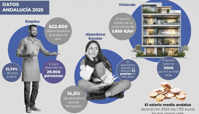 La Encuesta de Población Activa (EPA) de finales de enero de 2026 sitúa el porcentaje de paro juvenil andaluz en el 31,73%, la mitad que en el tope de 2013, pero sigue estando muy por encima de la media de la eurozona, donde está entre el 14% y el 15,2%. En España es del 25%.