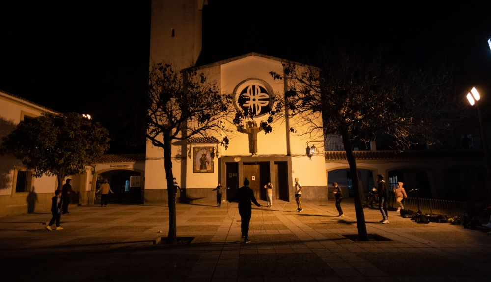 Daniel está en el centro de un ring que es la plaza central de Guadalcacín. Saltando a la comba, eléctrico. Los más pequeños se atrancan a veces, pero no paran de intentarlo una y otra vez hasta que el entrenador hace una pausa. Es cuestión de confianza y seguridad. El entrenador es cinturón negro, domina las artes marciales mixtas, el kickboxing, la capoeira… pero sobre todo defiende no hacer uso de la violencia. “De los niños me llena mucho ver cómo dan ese cambio en su vida, me veo reflejados en ellos, veo la superación. Pero sí dejo claro que no quiero peleones ni abusones aquí, lo que quiero es que si alguien viene a hacerte algo tú te defiendas. El plan es ponerlos a correr, saltar a la comba, hacer cambios de ritmo, saltos al banco, cardio…, y desde el primer día hacen combates conmigo. Tienen técnica, resistencia y saben defenderse. Son simulaciones para una situación real. Desfogan, sudan los malos rollos y ganan autoconfianza”.