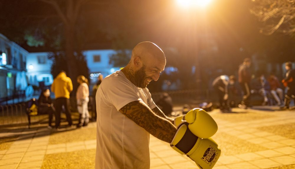 Desde hace 22 años, cuando aún estaba en Canarias, su vida es el deporte y las artes marciales. “De lunes a domingo”, espeta con una verborrea tan ágil como su gancho de izquierda. “Mira, empecé a hacerme tatuajes”. Pigmentos por todo el cuerpo para reforzar su identidad. “Ahora mi vida es el entrenamiento, mi moto y entrenar a los chicos. Cuando veo que superan las cosas que traen yo soy feliz. Me veo reflejado en ellos”. La vida de Daniel cabría perfectamente en una temporada de una serie de Netflix. Ya veo la serie cuando los chicos se colocan las vendas de sujeción, cuando en medio de la plaza, ante la enorme cruz de la Iglesia, comienzan a dar vueltas al trote, con las luces anaranjadas de las farolas en el anochecer.