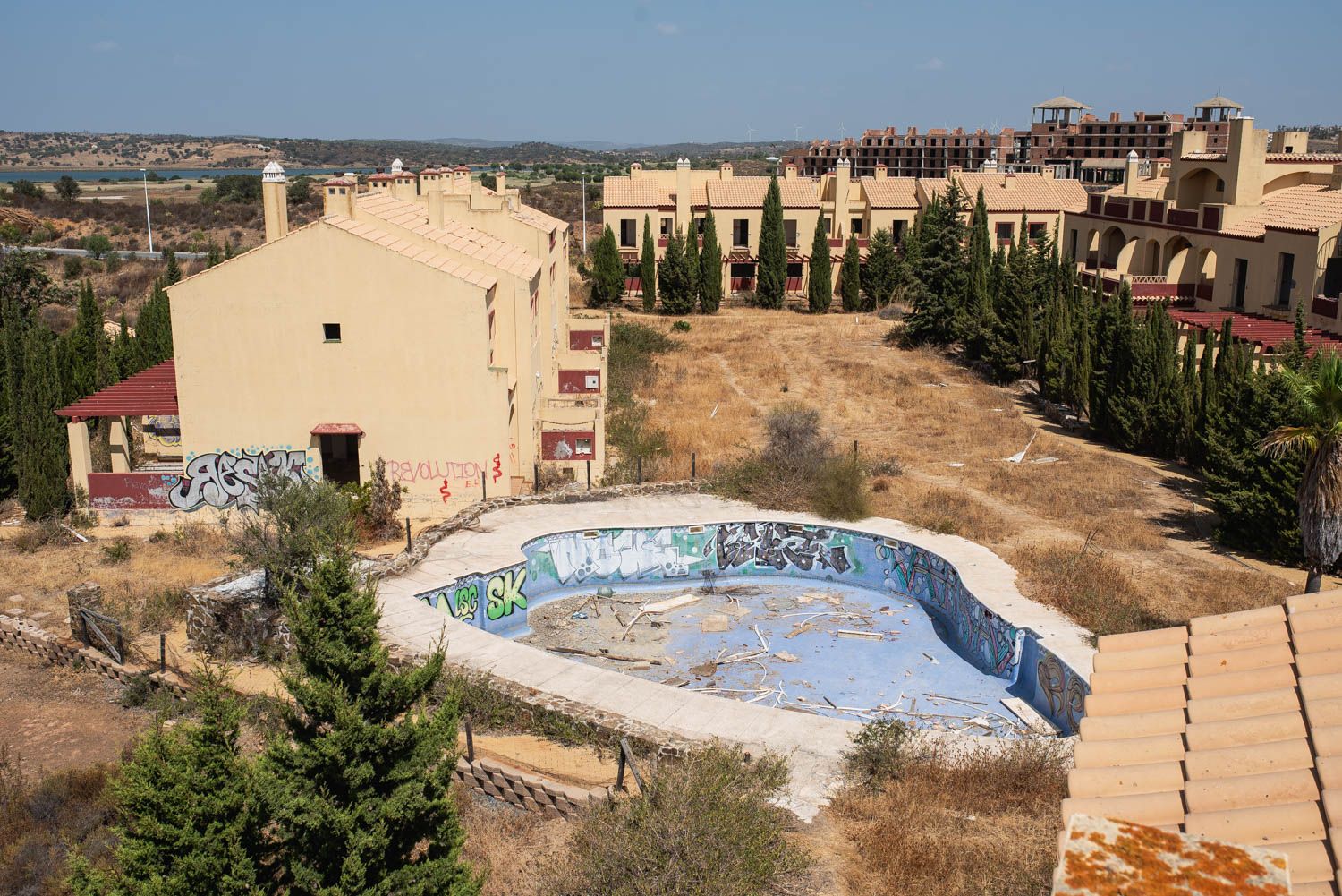 La situación del enclave es preocupante, con promociones incompletas sin vallado y en ruina que representan no solo un peligro físico, sino también un símbolo constante del fracaso y el abandono tras la explosión de la burbuja inmobiliaria de aquella España de principios de siglo. Lo ya construido está en un estado de conservación envidiable, “donde disfrutamos todos y cada uno de los días que pasamos aquí”, afirma un vecino británico del lugar. Pero nada se regala aquí: si La Colina, La Jara, Marina Esuri o Las Encinas son lugares ideales para vivir es gracias al empeño de los propietarios y sus comunidades. Comprar aquí es barato y se están haciendo varias promociones exclusivas que vuelven a darle vida a un proyecto mastodóntico que quedó a medio concluir. El problema radica en el conjunto, y no en las partes.