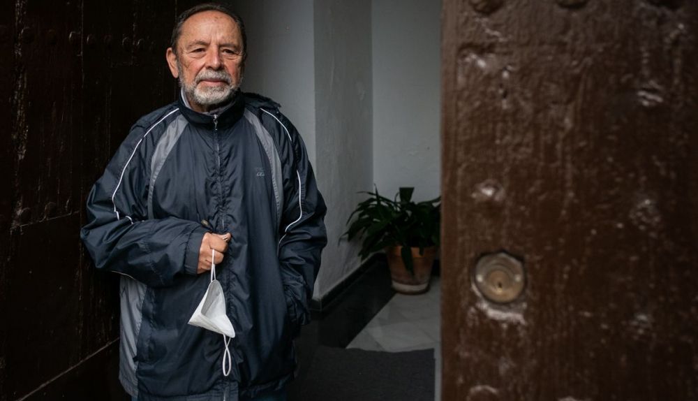Aguarda a los periodistas, entre la fina lluvia que no deja de caer en toda la mañana, tras la cancela de la parroquia de Nuestra Señora del Carmen, en el centro de Sanlúcar, donde tiene desde el pasado verano su modesto hogar. Subimos a su piso, enseña el salón, con cuadros de Algar o Bonanza pintados y regalados por los presos, con paisajes que aluden a algunos de sus últimos destinos como párroco, y explica que el televisor está tapado con una mantita porque “está castigado, me gusta muy poco. Se oyen tantos disparates…”. En el pasillo hacia su despacho hay un tapiz que le regaló su familia donde hay una inscripción “que me identifica muchísimo”. La lee en voz alta: “Mi religión es la esperanza, mi sacramento es la vida, mi doctrina es el trabajo, mi fe es el hombre y mi Dios, entrega, amor. Lo demás es otro mundo. Uno no vino para enseñar una doctrina sino para transmitir una vida, una esperanza y una manera de ser”, explica acto seguido.