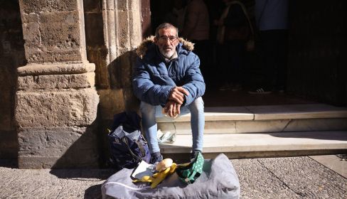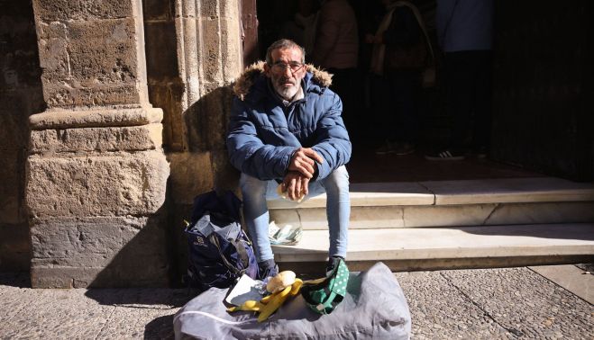 Él se limita a dar los buenos días, a buscar un poco de conversación, y si alguien le ayuda, mejor. Para poder comprarse un bocadillo. O, cuando lograr reunir el suficiente dinero, pagar una noche en una pensión. "Para descansar", dice. En la calle no puede hacerlo. Siempre está alerta, y muy incómodo.