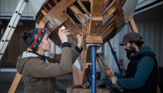 “Si quieres tener cada día muy claro lo que vas a hacer, este no es tu lugar”, comenta Conteau, una joven francesa que estudió Bellas Artes, pero que terminó en la escuela Albaola del País Vasco, una de las pocas del país que forma a carpinteros de ribera.