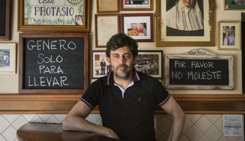 En la historia de Casa Protasio “no falta un perejil” (y nunca mejor dicho, si recordamos quién fue el primer proveedor de vinos de este despacho). Hay futbol de los dos equipos, hay flamenco del viejo y del nuevo, hay barrio de jardines y plazas, hay balas de la Guerra Civil, hay fotografías analógicas y digitales y recortes de periódico, hay vinos del Aljarafe y hay cante jondo, hay vecinos que saludan al pasar: retales de historia que se enredan cual caracoles en sus mallas.