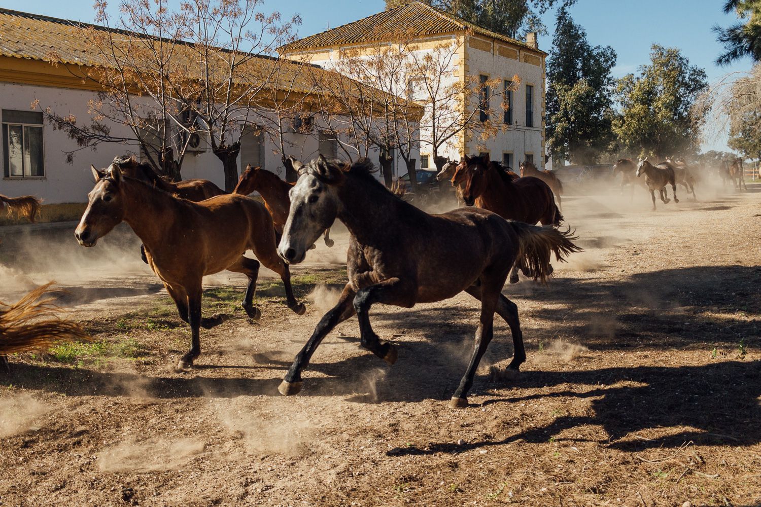 Tempul YM relincha como si se despidiera. A 20 minutos en coche, en el cortijo de Vicos, reina el sosiego. En plena época de nacimiento de potros, -de diciembre hasta abril- algunas yeguas están a punto de dar a luz. Sus barrigas lo revelan, han pasado 11 meses y pronto se pondrán de parto.