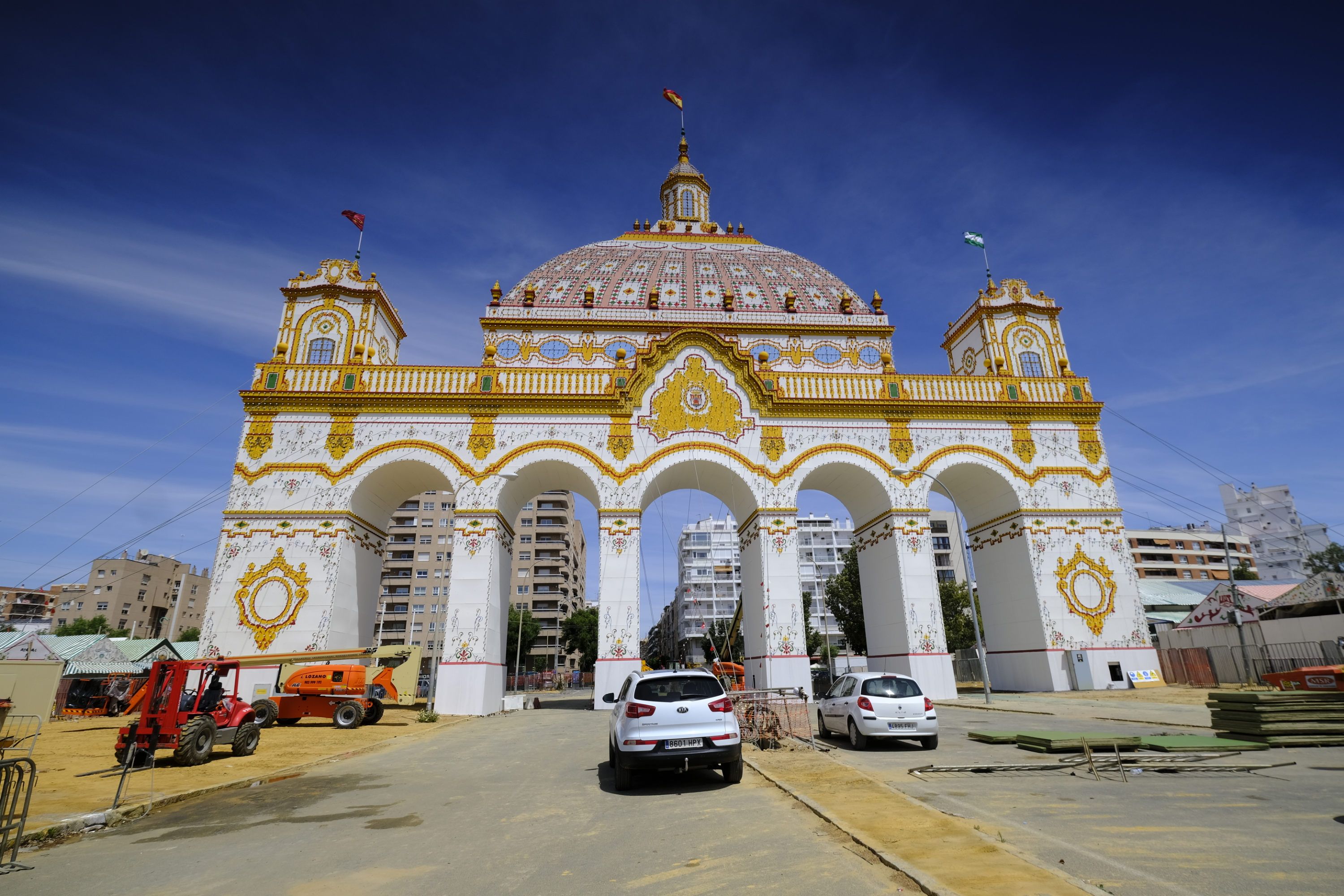 La portada sigue cercada, todavía no se pueden atravesar sus tres enormes arcos. Aquí quedan menos preparativos que dentro del recinto, pero los escombro también tienen un lugar significativo. Una mujer cruza la calle en bicicleta como si la semana del año que más dinero deja en Sevilla no estuviese a punto de llegar. Los coches también siguen pasando por una calle que dentro de poco será propiedad de los coches de caballo. Ni siquiera las casetas que dependen del Ayuntamiento están finalizadas. Aunque no lo parece, esto está a punto de empezar. Por fin.
