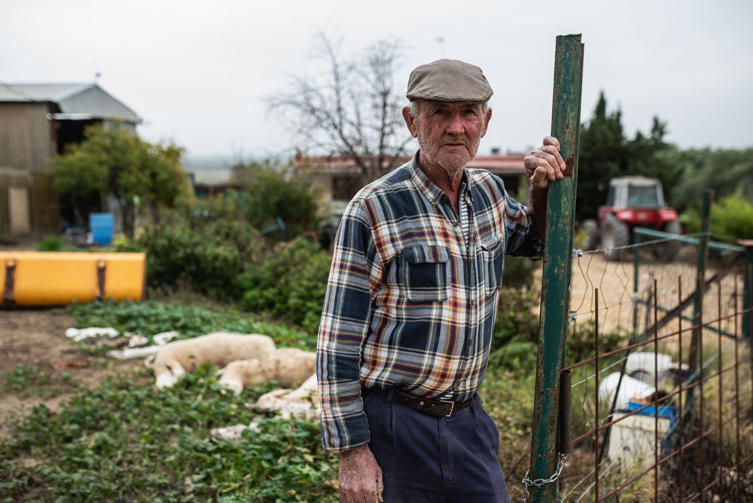 Hay un silencio sepulcral. A ratos, las lágrimas salen de sus ojos, narrando lo que día a día ve en su finca, en una situación privilegiada, a las faldas de los alcores y ante la inmensidad de la Vega de Carmona. Tierras fértiles y verdes en un año que pintaba muy bien por las lluvias. Todo comenzó a torcerse hace ya más de un mes, cuando la lengua azul, une enfermedad vírica que ataca a las ovejas, comenzó a matar a muchas de ellas. Juan Virola, de 63 años, pastor desde los 13, resume la situación que enfrenta con amargura: “Esto es una ruina. Llevo meses viendo morir a mis ovejas todos los días”. Según sus cálculos, ha perdido ya 300 corderos y más de 30 ovejas adultas. Explica que, al infectarse la madre, la leche que produce también está contaminada, lo que lleva a la muerte de las crías: “Cuando el cordero mama de una madre enferma, se muere también”. Virola lamenta que la administración no ofrezca explicaciones ni soluciones claras: “Nadie contesta nada. Todo el mundo está callado”.