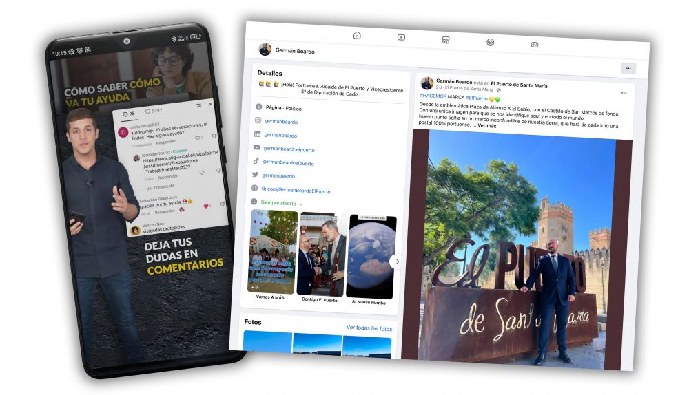 Germán Beardo es alcalde de El Puerto de Santa María. Desde que tomó el bastón de mando en 2019, no ha abandonado ese pulso sobre sus votantes y no votantes. "El modelo de comunicación ya no responde al habitual canal intermediario de los medios de comunicación. En un origen, era en Twitter, y luego en Instagram, LinkedIn o TikTok. El Puerto tiene 90.000 habitantes, y para el 78% de ellos, las redes sociales son su principal manera de informarse", indica Beardo. Debido a que se permite el contacto "de primera mano", decidieron "comunicarnos fundamentalmente por redes. Es un éxito, no solo por la interacción, sino que a golpe de clic tenemos el sentir por barrios, géneros... población segmentada".