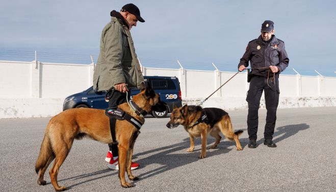 En la unidad periférica de Torregorda, que en sus inicios se alojaba en La Carraca, se distinguen dos especialidades, los perros que pueden encontrar hachís, marihuana, cocaína o heroína, y los que identifican explosivos propios de atentados.