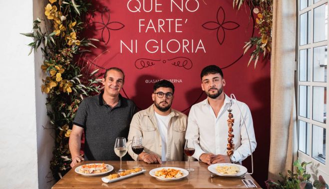 “Ahora miro atrás y también a mí me parece mentira”, confiesa Carlos, “pero una cosa ha llevado a la otra y, aunque nunca hago las cuentas del personal que ya trabaja con nosotros entre unos negocios y otros, la verdad es que ya estamos muy cerca del centenar de trabajadores”. Lo cuenta, con la tranquilidad de quien confía plenamente en ellos, en la Santa Taberna, uno de los establecimientos gastronómicos de Los Palacios y Villafranca que abrió sus puertas el año pasado y que ha sido capaz de consolidar una clientela en tiempo récord. En la última Feria de la Tapa del pueblo, celebrada en el contexto de la Feria Agroganadera, sus croquetas de calabacín se llevaron el premio. “Nuestro secreto no ha sido solamente ser capaces de quedarnos con la clientela habitual del bar que había antes”, explica Carlos, en referencia a Casa Faustino, que estuvo en esta misma placita del barrio de La Nana durante décadas y cerró, “sino ampliar esa clientela gracias a los miles de seguidores que tenemos en las redes sociales”.