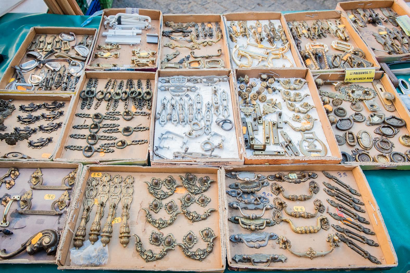 Hay una mesa en la plaza de Montesión que destaca por la prominencia ordenada de sus tiradores. Frente a ella, Antonio 'el de los tiradores', coloca y revisa su género. 42 años acudiendo cada jueves al mercadillo dan para escribir uno o dos libros, pero lo primero que recalca este hombre es que ahora tienen que estar "en alto". A su parecer, "antes se estaba mejor, ahora hay que tener mucho cuidado porque nos roban".