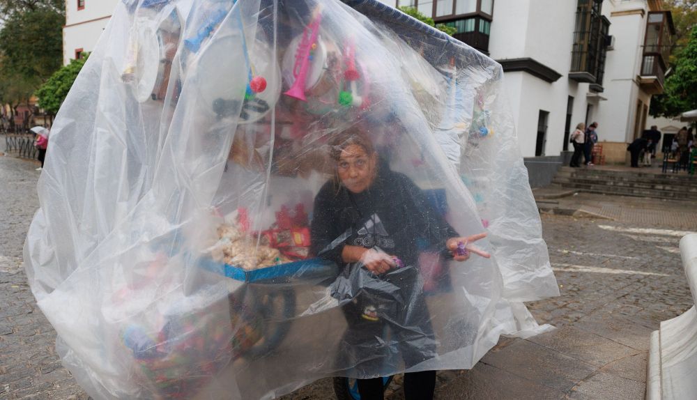 En estos días, las patronales hablan de la bajada en las previsiones de la ocupación hotelera, del impacto que puede tener el mal tiempo para bares y comercios... Ellos, los buscavidas, son el último escalafón en esta cascada de consecuencias del mal clima para una provincia que espera con ansia fechas como esta. Son los invisibles, ante los cuales la gente pasa corriendo en estos días para refugiarse de la lluvia.