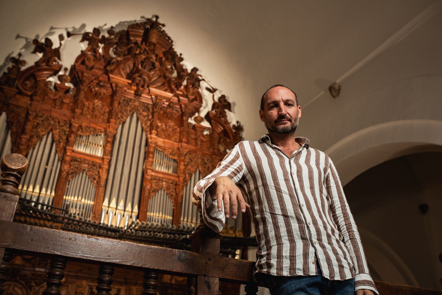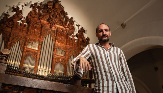 “Si comparamos el órgano de Lebrija con otras ramas artísticas, estaríamos hablando de un Velázquez o de un Martínez Montañés”, sostiene él mientras acaricia su doble teclado y recuerda que en el órgano confluyen todas las artes porque, inventando hace más de dos milenios, fue hasta el siglo XIX la pieza musical más compleja inventada por el hombre -como una orquesta en un solo instrumento- y “en él pueden apreciarse la arquitectura, la pintura, la escultura, la física, la química, la artesanía de la piel, el metal…”. Lamenta Martínez que apenas un 20% de los órganos de la provincia de Sevilla estén funcionando. “Los órganos no son adornos del coro alto, sino que están para que suenen”, denuncia quien ha creado, por verdadero amor al arte, una fundación bautizada con el significativo nombre de Alquimia Musicae, una entidad sin ánimo de lucro que busca fomentar la implicación personal y directa con la cultura, el arte y el conocimiento a través de experiencias artístico-musicales.