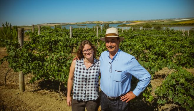 Ella es bióloga marina y a sus 28 años, tiene “un pie en el mar y otro en el campo”. Su pasión radica en las diferentes técnicas de pesca, pero en la actualidad disfruta ayudando a su padre. “No tenía ni idea de vino hasta que terminé la carrera en 2014 y empecé a echar una mano en la vendimia. Se aprende muchísimo y hasta que no te metes de lleno no sabes todo lo que conlleva el vino”, afirma la joven. La mezcla entre un ingeniero agrónomo y una bióloga, entre un padre y una hija, consigue que el trato hacia la naturaleza sea de lo más respetuoso posible, es por ello que decidieron desde un principio tener una viña ecológica.