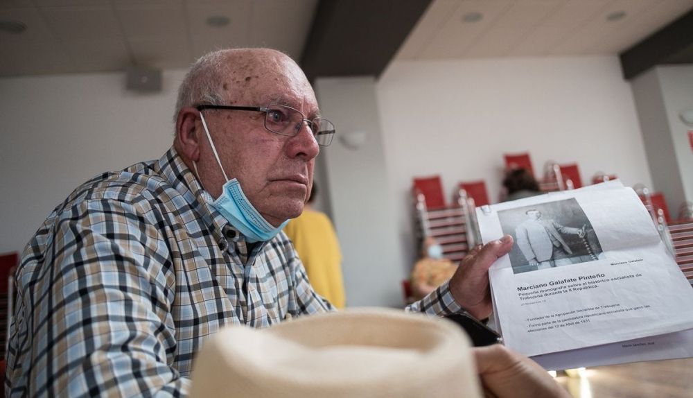 “¿Papá, dónde te has metido…?”, dice en voz alta Francisco Galafate, mientras se afana en buscar entre sus papelotes la cuartilla que contiene la foto y los datos biográficos de su progenitor. Paco, que a sus 86 años ha llegado esta tarde primaveral a Trebujena desde la vecina Sanlúcar, rebusca para mostrar al reportero la fotografía de su padre, cuyos restos, qué cruel paradoja, lleva toda la vida buscando. La foto finalmente emerge entre sus documentos, los restos puede que estén a punto de ver la luz para poder darles digna sepultura. Marciano Galafate Pinteño, alias la Cunda, a la sazón fundador de la agrupación socialista de Trebujena y miembro de la candidatura republicano socialista que ganó las elecciones del 12 de abril de 1931, fue asesinado cuando Paco tenía 18 meses. Hay un silencio. “Me emociono…”. Silencio. “Me emociono porque no fue justo lo que le hicieron… Yo sueño con mi padre, le tengo poesías escritas, pero yo a mi padre no lo conocí. Me dejó con 18 meses, y también a un hermanito con 11 meses, que luego murió en Cádiz de pulmonía. Yo me salvé”.