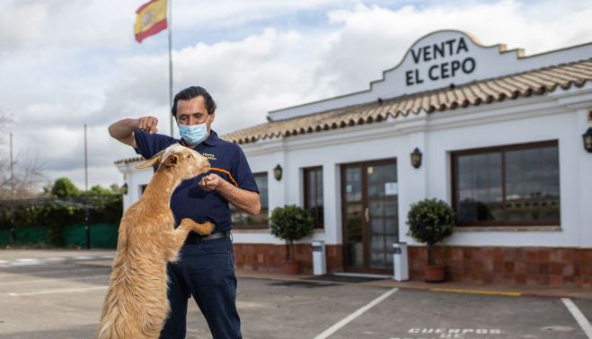 “Viendo la evolución de esta pandemia hemos decidido cerrar hasta el 26 de febrero. Que Dios nos ampare. Viva España”. Escrito con tiza blanca, en una pizarra que normalmente serviría para anunciar los platos del día, se lee este mensaje, con el que la Venta El Cepo anuncia su cierre temporal. El establecimiento, situado en el kilómetro 5 de la carretera que une Jerez y Rota, está rodeado de cárceles. A unos pocos metros tiene Puerto I, Puerto II y Puerto III.