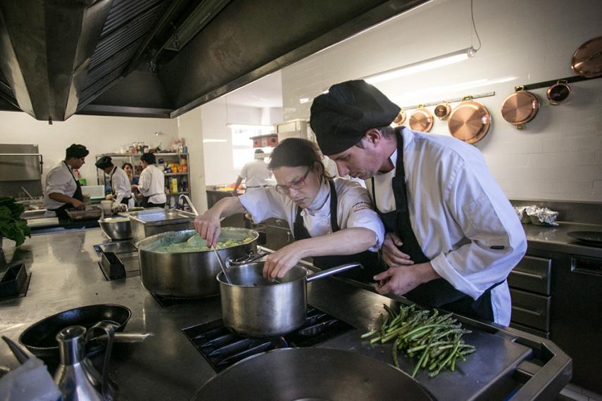 El futuro personal del restaurante, cuya apertura al público ya es inminente, atiende las indicaciones en plena clase de cocina. FOTO: JUAN CARLOS TORO.