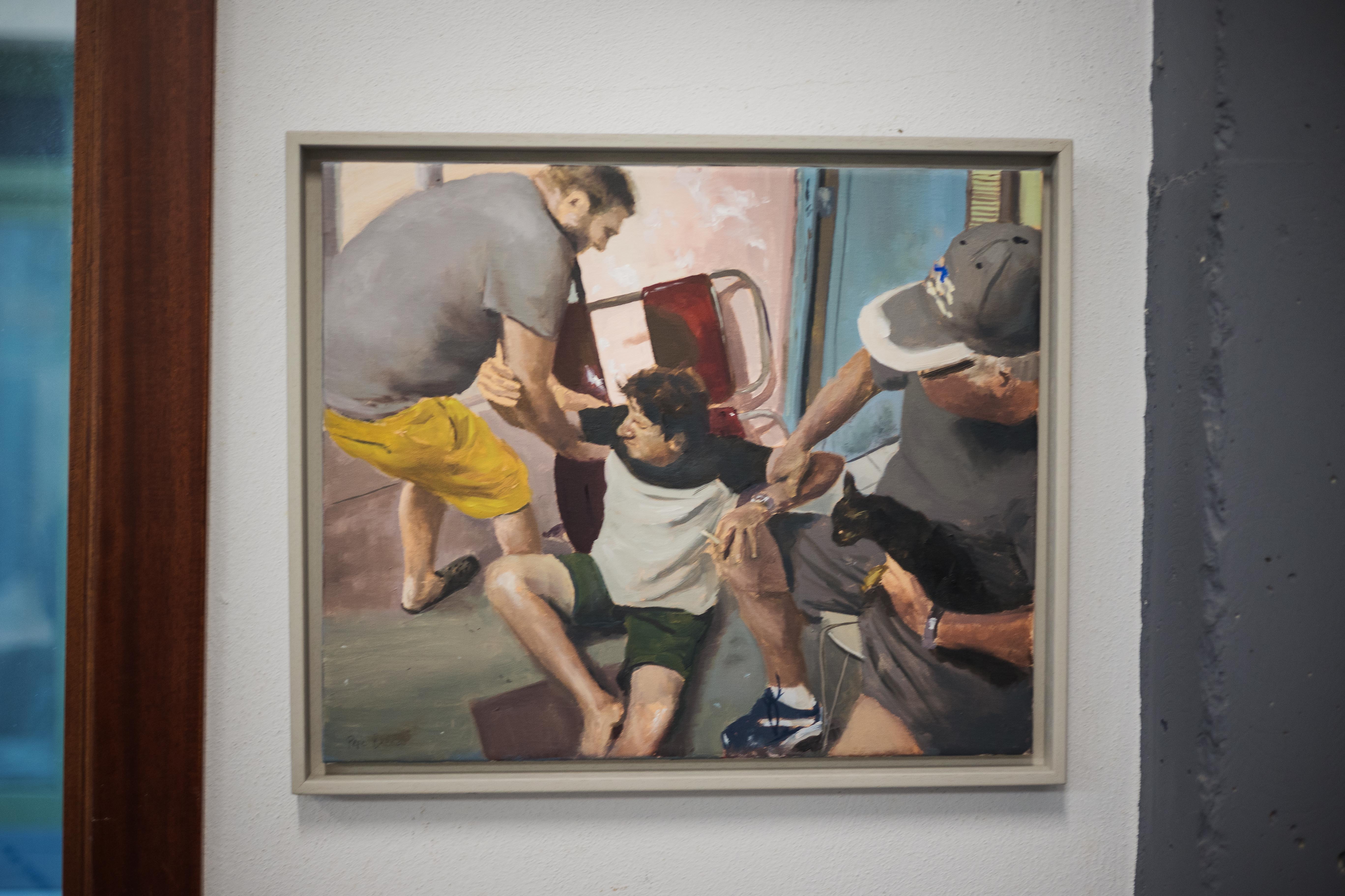 "Si es por no ir a la Facultad, sí. Hice Imagen y Sonido en La Granja —IES de Jerez—, pero al final das clases con un pintor y otro y vas aprendiendo. Lo que empezó como un hobby, ahora es mi segundo trabajo", explica a lavozdelsur.es en su estudio de la calle Cobos de Cádiz. El espacio sorprende nada más pasar por delante. Unas grandes cristaleras dejan entrever todas sus obras y la propia creación del artista haciendo de su estudio mitad lugar de trabajo mitad galería. "Ahora estoy preparando una exposición que voy a hacer en la Sala Rivadavia en noviembre", cuenta mientras señala algunas de las escenas familiares que retrata con tres claros protagonistas: sus hijos Sara, Pepe y Mateo.