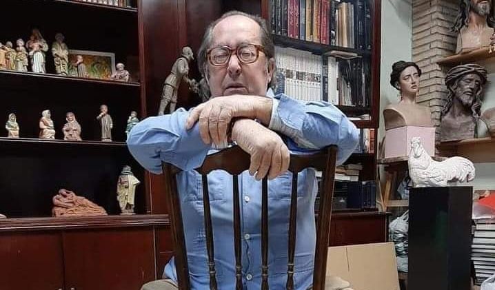 Al Pepón lo reconocía aquí todo el mundo porque era la cara más célebre de entre los juglares que seguían empatizando con el pueblo, y no había evento cultural o folklórico en el que no tuviera él una vela bien encendida… No solo perteneció a todas las hermandades, sino que quizá haya sido el único palaciego que formó parte de todas las juntas de gobierno de todas las cofradías, fueran de gloria o penitencia, aunque su corazón latiera especialmente para su Hermandad del Rocío, para la de los Servitas, para su Virgen de las Nieves, a la que ha tenido que ver coronarse canónicamente ya desde la luna… Pregonó todas las fiestas, declamó a todos los poetas con sentido de pueblo y fue costalero del Cristo de la Misericordia y de la Virgen de los Remedios, capataz del Gran Poder y de Nuestra Señora de los Ángeles, del Cautivo y hasta de la Inmaculada.