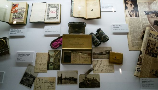 Una Remington Portable Model 5 preside la estancia. La máquina de escribir es negra, con teclas redondas, las letras de color claro, y pequeña para datar de principios del siglo XX. Viéndola es inevitable imaginarse a Chaves Nogales dando forma a sus artículos, reportajes y entrevistas con ella. No es la que utilizó, pero seguramente usara una muy parecida. La Remington es casi lo primero que ve el visitante cuando entra en la exposición que le rinde homenaje, Cuadernos y lugares, en la sala Santa Inés de Sevilla. En ella, se relata la vida del periodista a través de 16 paneles, desde sus inicios en la prensa local, hasta su consagración dirigiendo periódicos, viajando por toda Europa en avión y relatando los horrores de los totalitarismos que amenazaban el continente.