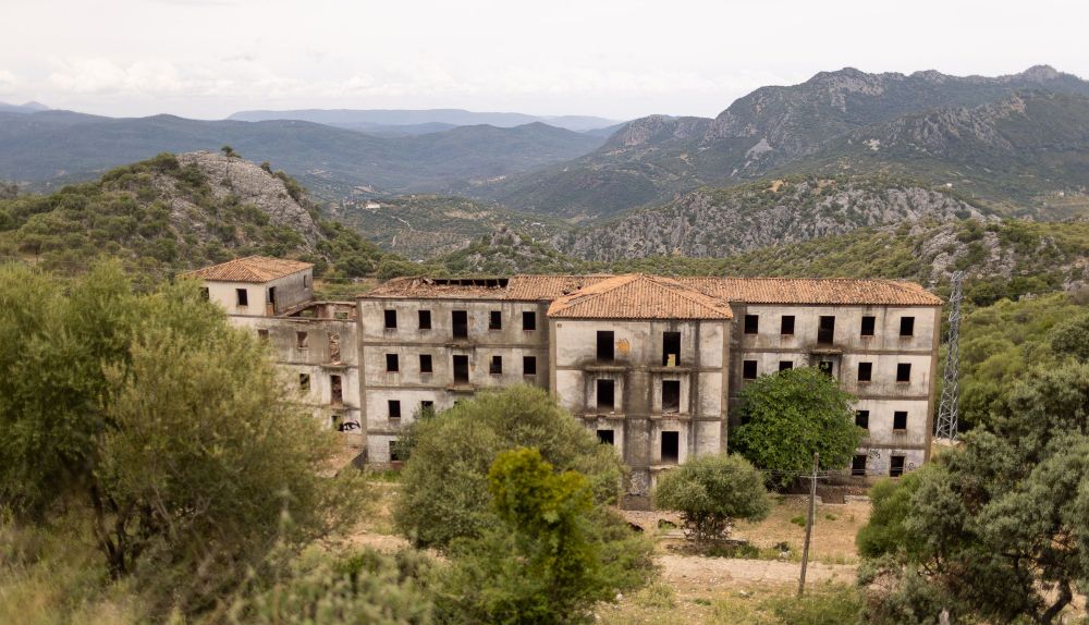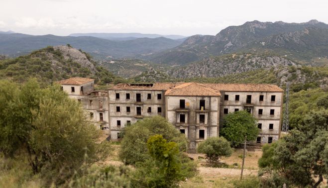 El gran hotel de lujo que iba a ser el primer paraíso vacacional de la Sierra de Cádiz, el primer complejo de eso que ahora se llama premium se quedó el últimum. Ahora es el dormitorio de un modesto mulo, el testamento carcomido de un sueño que se quedó en nada.
