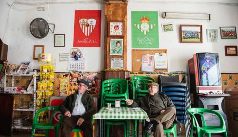 El Chati es uno de esos bares de toda la vida, sin las relaciones sociales turbo de la ciudad. Daniel mira al frente. Estuvo fuera décadas en Madrid. Se ha quedado viudo. "He venido aquí a morir". Se marchó con 12 años e hizo carrera hasta jubilarse en la hostelería. "El pueblo lo veo fatal, con las calles con cagás de perros, no lavan los cubos de la basura, vas al médico y a lo mejor se han ido a desayunar. Lo mejor es ir directamente a Sevilla". Al estar solo, "prefiero esta tranquilidad a Madrid", dice. Hace un año que llegó, tras más de dos décadas sin pisar el pueblo. Ha vuelto de alquiler. José Trejo, por su parte, ve el pueblo también muy mal. "Hay menos habitantes de lo que dicen las estadísticas". Considera "un milagro" los cinco partos que están por venir. Es dueño de un taller y dice que "abrir un negocio es matar hambre. Pagamos más impuestos que en Sevilla y que en Madrid". Y pide que se rindan cuentas. "Los socialistas no quisieron poner aquí el centro de Mercadona, que se lo llevaron a Huelva. Que intenten montar emprsas estatales, que tenemos una autovía a siete kilómetros". Son diagnósticos menos optimistas pero la misma realidad de los pueblos. Al poco, ambos ríen cuando Verónica defiende la vida rural. Es la visión amplia de convivir de verdad con quien piensa diferente, explica ella misma.