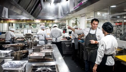 Muchos de los estudiantes que pasan por la Escuela de Hostelería acaban pasando por los propios establecimientos del grupo. Manuel Ángel Campos es uno de esos casos. Empezó como estudiante hace siete años. "Hice el curso de iniciación de cuatro meses a la cocina profesional y luego realicé la licenciatura técnica de tres años". Ahora mismo, es segundo de cocina de la Taberna del Alabardero. Preguntado por si tiene el sueño de abrir su propio restaurante y optar por alguna estrella en el futuro, cuenta que ahora mismo está bien en el restaurante, porque además es formador de otros alumnos.