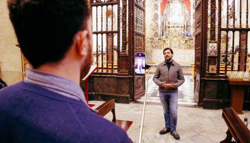 "Estamos rodando pequeños reportajes que duran alrededor de un minuto. Es un formato pensado para redes sociales, unos vídeos en los que queremos hablar de asuntos históricos y culturales de Jerez en el más amplio sentido de la palabra, desde personajes como Alvar Núñez Cabeza de Vaca a la 'invención' de las papas aliñás", dice M.A., que, por cierto, lleva varios meses viviendo y trabajando en Jerez, lo que ha facilitado que se involucrara en este proyecto. La dirección y el montaje corre de su cuenta –M.A., arquitecto de formación, ha estudiado también cine en Austin, Texas... que sonar, suena estupendamente– mientras que Manolo Romero, doctor en Historia del Arte, se ocupa de los guiones, la presentación, locución, y parte de la producción; del resto de la producción se ocupa Irene Canca, un resto muy amplio, que ya decimos que va desde el último 'golpe de cepillo' en el pelo de Manolo a la gestión de las redes sociales, pasando por llamar al párroco de la iglesia que toque para concertar la cita.
