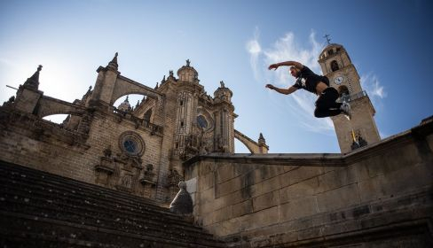 Las etiquetas asociaban a esta disciplina con vandalismo callejero, con gente que va destrozando con sus saltos el mobiliario urbano, y nada más lejos de la realidad. El respeto al entorno es tremendo. "Afortunadamente, ha cambiado mucho la visión en los últimos años. Antes la gente no conocía al parkour y pensaba que era algo peligroso, que se podían romper las cosas. Pero el respeto por los edificios históricos y monumentos es máximo. Buscamos sitios en los que no haya ningún problema. Usamos el mobiliario de manera adecuada para poder seguir practicando".