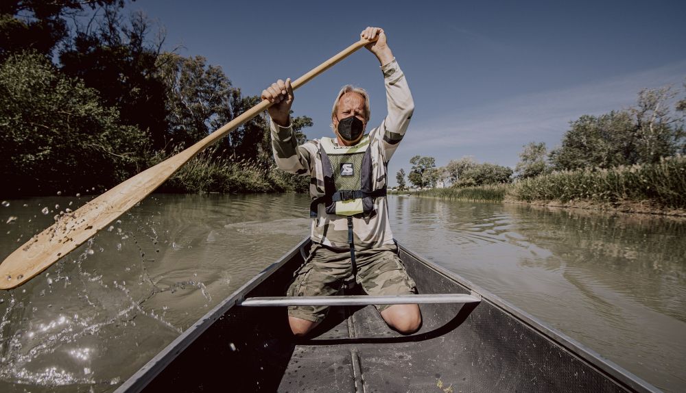 “Los niños querían probar a remar pero no tenían dinero, así que pensé que, como contraprestación, recogieran basura, y entonces les dejaba las canoas y kayak a cambio de que recogieran basura. Ahora vienen a por más, pero ya lo tienen todo limpio”, ríe Lars, pantalón corto, gafas con una colorida montura que denota su extrovertida personalidad y una tripa prominente que denota que hace ya un tiempo que dejó atrás los descensos del Sella y la competición internacional y se dio por entero a los negocios turísticos en la naturaleza. “Antes de los 60 me pongo en forma, quiero competir en los mundiales de veteranos”, promete risueño el oriundo de Solna, en Estocolmo, mientras introduce con vigor la pala en parte del metro y medio de profundidad que arrastra el Guadalete a su paso por la campiña jerezana.