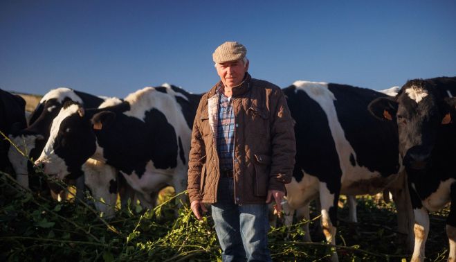 “Con dos añitos, ya iba yo detrás de las vacas con un palito, acompañando a mi padre”, recuerda 'el de Aniceto', que con solo ocho años tuvo que hacerse cargo directamente de todas porque su padre contrajo la tuberculosis. “Luego duró muchos años, pero ya era como si se viene un viejo aquí contigo a hacerte compañía”, sonríe. Desde su más tierna infancia aprendió a ordeñarlas dos veces diarias, a soportar sus pisotones y sus patadas, a entenderlas por cada mugido, a auxiliarlas cuando parían, a vender los becerros, a regatear el precio cada vez menos regateable. “Esto no entiende de horarios ni de sábados o domingos ni de vacaciones, porque los bichos tienen que comer todos los días”, explica, “y da igual que estés cansado o que se te haya muerto tu madre; tienes que venir a la fuerza, y no puedes meter a nadie porque los cincuenta euros que vas a ganar se los llevaría entonces el trabajador”.