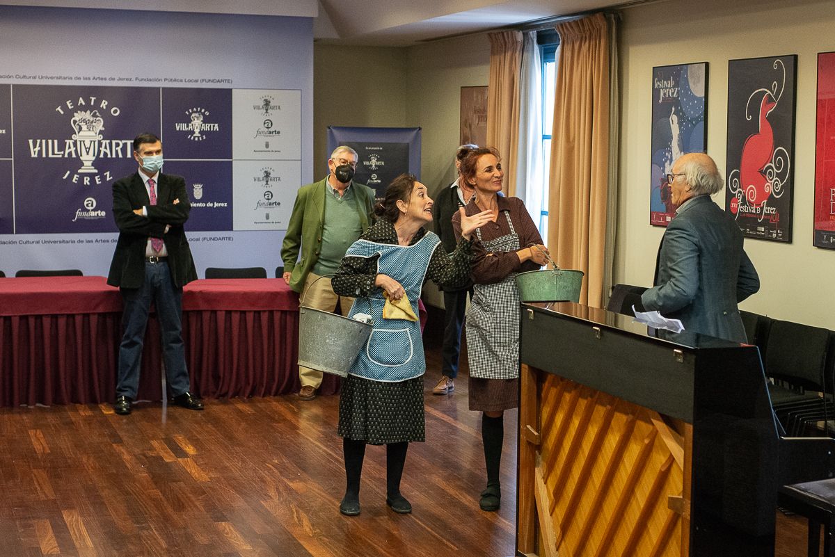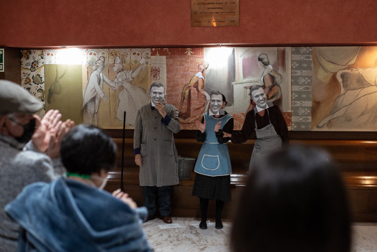 Media hora tardaron en agotarse las 200 plazas que se ofertaron para visitar el Villamarta con motivo de sus bodas de plata. Había ganas de conocer el coliseo jerezano a través de una visita guiada teatralizada conducida de forma magistral por Juan Manuel Sainz Peña, escritor y trabajador del teatro que lleva desde sus inicios formando parte del equipo de este emblema cultural, y de Ana Oliva, Melchor Campuzano y María Duarte, los encargados de aportar un contrapunto teatral al recorrido por las tripas del teatro.