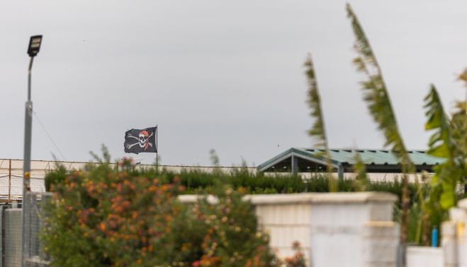 Desde fuera, por encima de las altas vallas que rodean a la finca denominada Majarazotan, en la carretera que va de la barriada rural de Torremelgarejo a la entidad local de Nueva Jarilla, se pueden ver techos de numerosas viviendas y edificaciones. Hasta alguna cuadra, caballo incluido. Setos o cañizos impiden divisar más allá, aunque por encima se atisba una bandera pirata.