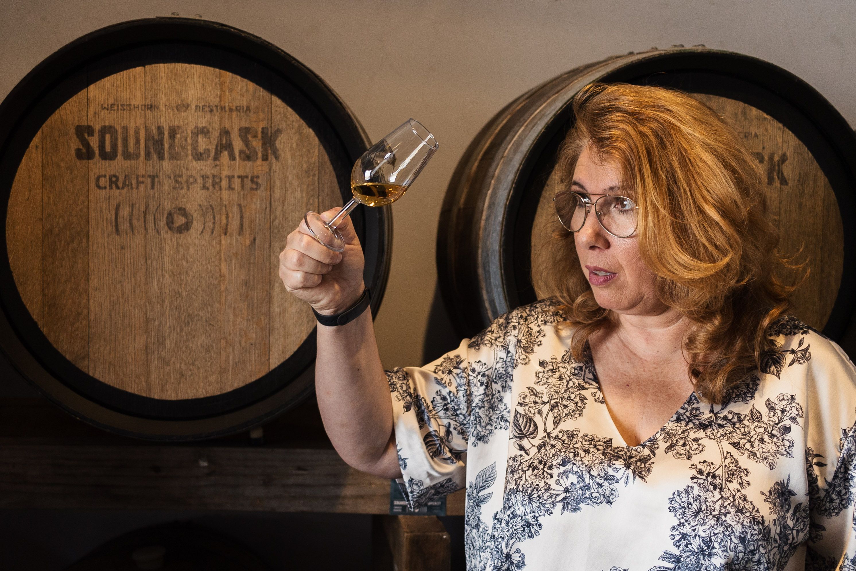 El ingenio y empuje de este matrimonio le llevaron a ir más allá y mezclar sus dos pasiones en un solo producto: la música y la ciudad a la que ambos aman. De estos amores nació el proyecto Soundcask, una técnica propia que consiste en realizar destilados a partir de vinos del Marco de Jerez y envejecerlo cada día con ondas de una canción diferente. “Cada barril tiene integrado un altavoz específico para sonidos graves que genera pequeñas vibraciones que aceleran el envejecimiento”, explica Roberto Payá.