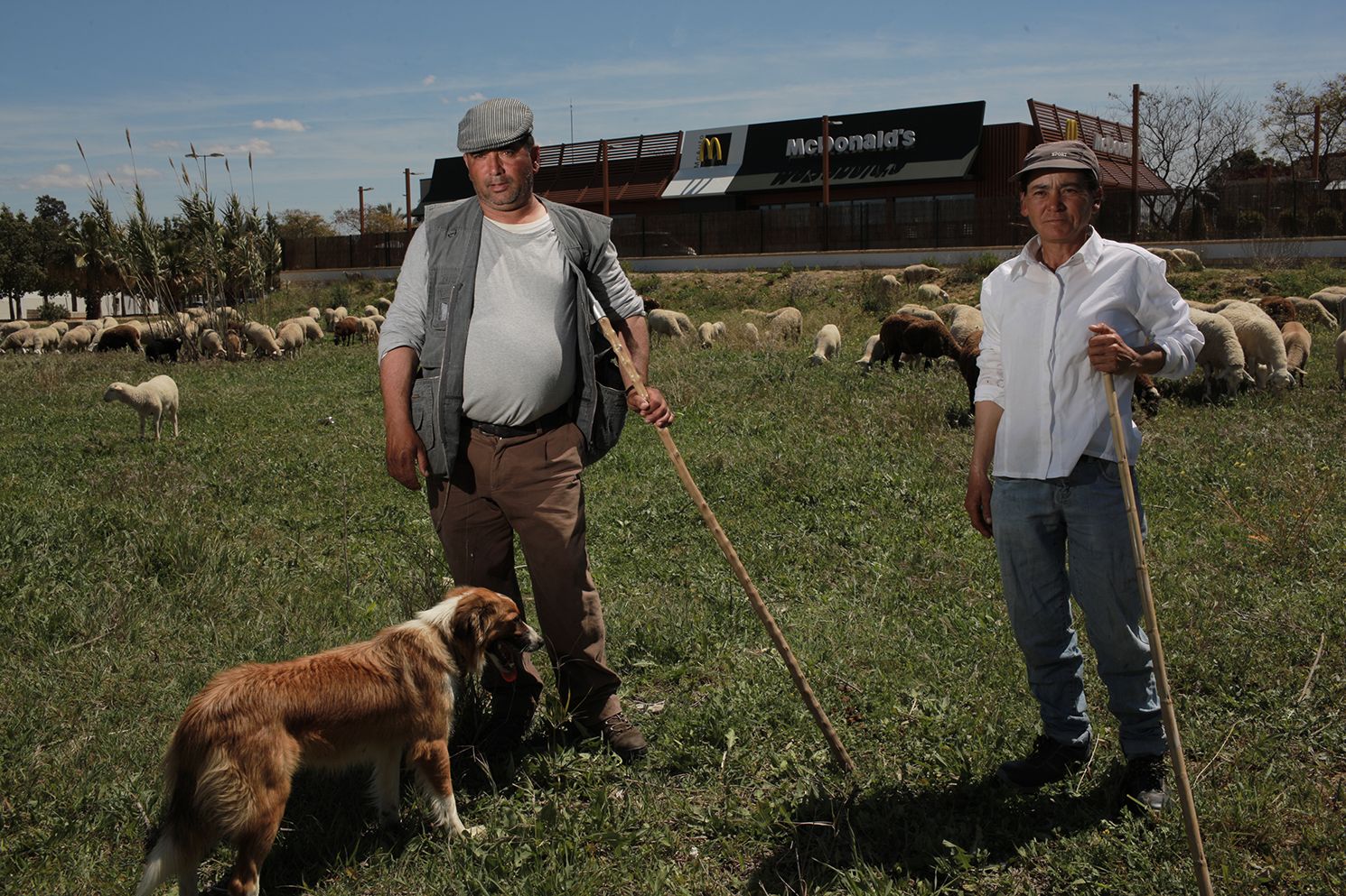 Con él va Ana, hija de un amigo suyo, que le ayuda cuando puede. “Esto lo traigo en la sangre”, dice ella, a la que le relaja pasear con el ganado. Y la quita de su casa. “Vengo por distraerme”, apunta. Cinco años lleva ya en paro. Siempre ha trabajado en el campo. En viñas, campañas de remolacha, pipas… “Pero ahora no hay nada”, resalta, y también se queja del estado en que se encuentra el terreno donde están pastando las ovejas, a espaldas del McDonalds de La Granja. “Si estos animales están protegidos ¿por qué no hay comida para ellos? Esto da asco como está, con tanta basura, es un peligro para los animales”.