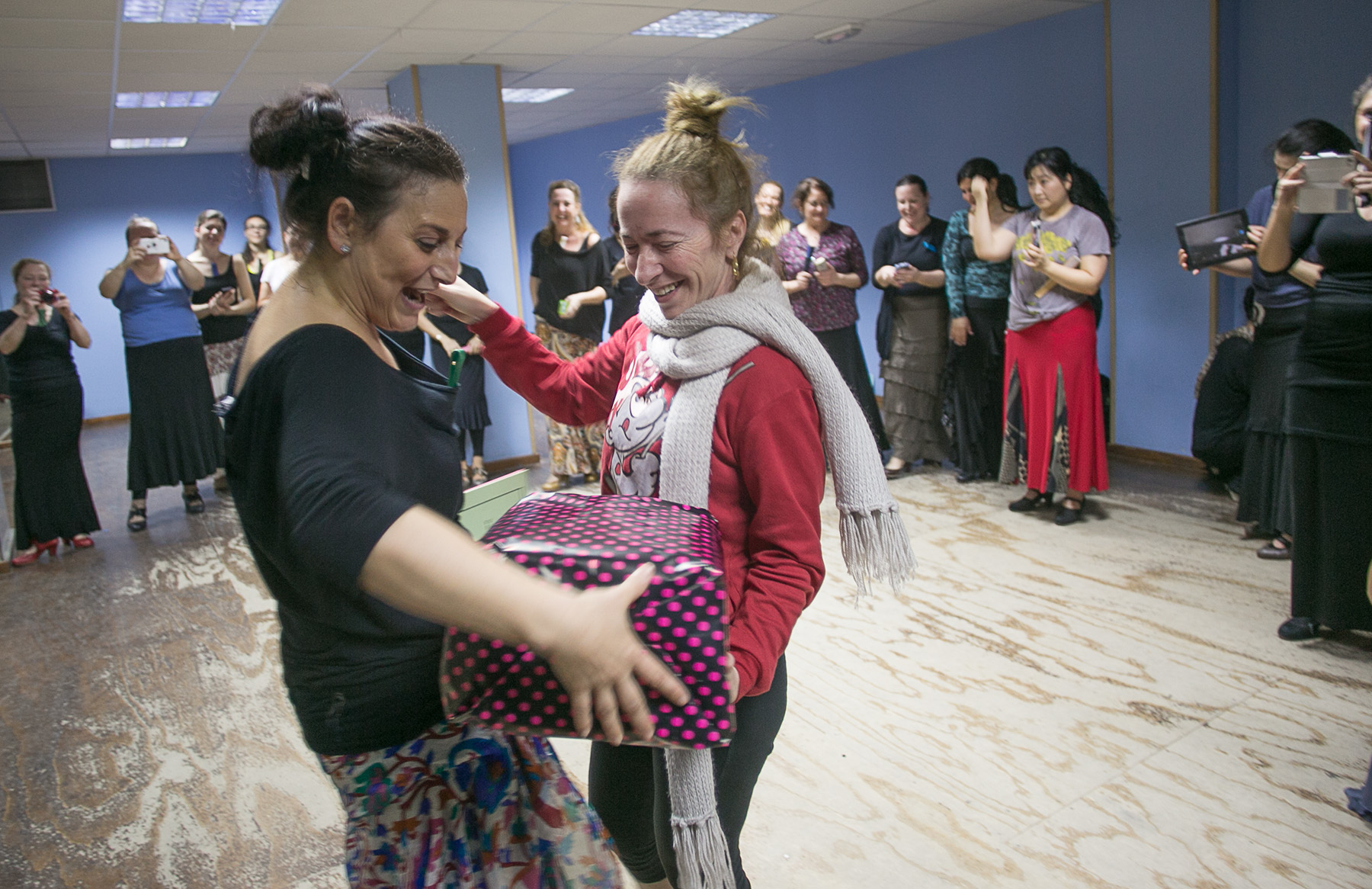 Patricia Bertoloto, Akiko Aso, Miriam García, Veronique Sondag, Julie Zamorano, Rocío Fernández… Son más de las tres de la tarde de un día laborable cualquiera de primeros de marzo en Jerez. La maestra va repitiendo la misma secuencia: un nombre en voz alta, entrega el diploma a la cursillista, se besan, se tocan, sonríen mientras posan, y otras compañeras inmortalizan el momento con sus móviles. Una alumna asiática le entrega un obsequio en forma de abanico chino hecho a mano; otra discípula le ofrece una toalla con su nombre bordado. "Hasta pastillas para la voz me han traído". La maestra también tiene nombre: se trata de la bailaora malagueña Susana Lupiáñez La Lupi, un referente el mundo de la enseñanza del baile flamenco. Ha sido la comandante de varias jornadas agotadoras hasta edificar un baile por guajira.