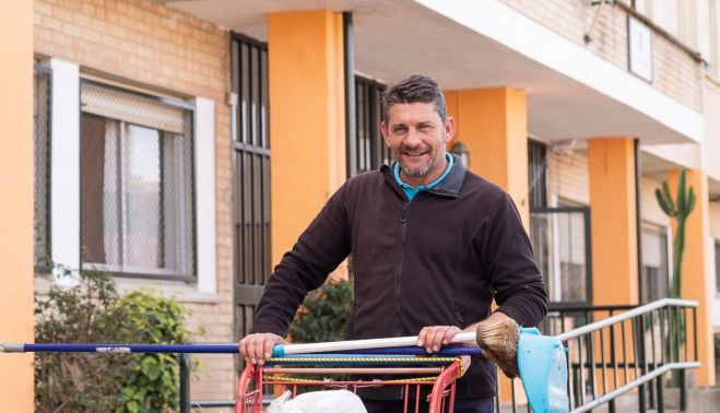 Su padre también era portero de colegio. Entró en el Ayuntamiento a trabajar hace 30 años, y en cuanto vio la oportunidad, quiso dedicarse a la misma profesión que su padre. Hoy en día, en los colegios quedan cada vez menos. Es la dirección de cada centro la que debe decidir qué hacer con las instalaciones de vivienda que van quedando. En muchos, la dirección prefiere ceder los espacios a las Ampas, o dedicarlas a otras cuestiones. En La Unión, donde reside y trabaja Javier desde hace "5 o 6 años", prefirieron mantener esta figura. "Sí, se están perdiendo los porteros como yo", expresa. Su casa, desde dentro, sencilla, tranquila... Nadie diría dónde se ubica.