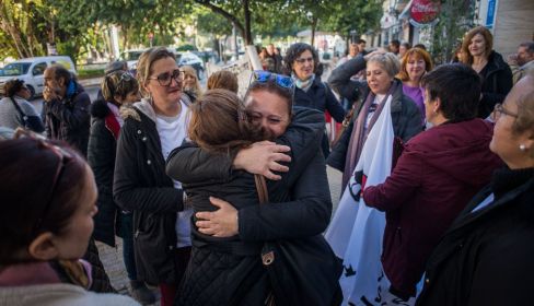 Los últimos cuatro meses que estuvo en su puesto de trabajo lo pasó fatal. “Me estaba volviendo loca”, apunta. Desde que se levantaba, a las seis y media de la mañana, hasta que se acostaba, sobre las once de la noche, no paraba de mirar su cuenta bancaria, “para ver si me habían pagado algo”. “Eso psicológicamente es insoportable”, señala. Pero ella está demostrando una gran fortaleza. Y eso valoran mucho las kellys que han querido venir a Jerez para apoyarla. “¡Manuela no está sola! ¡Manuela no está sola!”, gritan las personas que se han concentrado para el cafelito. “Hemos venido desde Tenerife solo para estar con ella”, dice una camarera de piso que prefiere no dar su nombre. El miedo al despido impera en el sector. “Estamos precarizadas”, añade, y cuenta que hace diez años, durante su jornada laboral, tenía que limpiar unas diez habitaciones. Ahora le piden que haga más de 20.