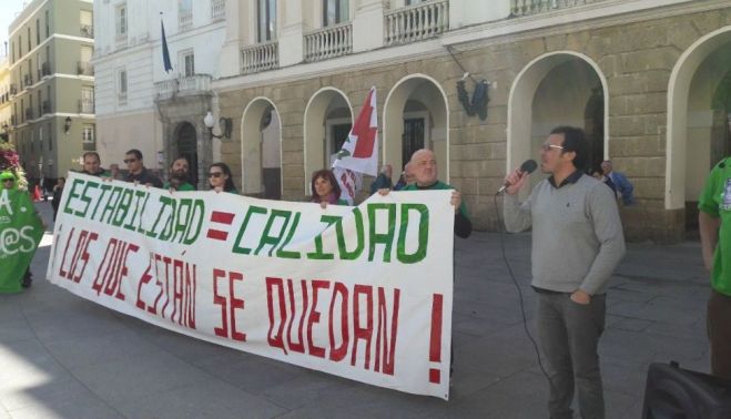El alcalde de Cádiz, José María González, la concejala de Educación, Ana Fernández, y el primer teniente de alcalde, Martín Vila, han mostrado hoy su respaldo a las reivindicaciones del profesorado interino, que ha protestado hoy en la ciudad con una manifestación convocada. Los profesores interinos han vuelto a exigir, como ya hicieron el pasado 12 de marzo, la consolidación laboral del profesorado interino mediante un sistema de acceso diferenciado, un plan de estabilidad para el profesorado interino, la reversión de los recortes vengan de donde vengan y la mejora de las condiciones laborales del profesorado interino: mismo trabajo, mismos derechos.