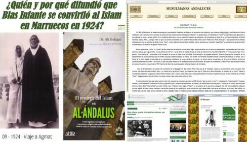 El origen se encuentra en el artículo de Ali Manzano –actual dirigente de la organización 'Nación Andaluza'- publicado bajo el titulo "Blas infante y el Islam" en primer lugar en la página “Musulmanes Andaluces” y luego en otras tantas, donde tras una adecuada preparación y puesta en escena, se cita lo siguiente: "Muhammed Ali Cherif Kettani en su libro "Inbia’t al Islam fi Al-Andalus", escrito en lengua árabe, cuya traducción podría ser "el resurgimiento del Islam en Al-Andalus", editado por la Universidad de Islamabad en el año 1992, lo relata de la siguiente forma: 15 de Septiembre de 1924...hace la 'Shahada' en una pequeña mezquita de Agmhat, adoptando el nombre de Ahmad. Ibn Al-Arabi, el gran maestro sufi andalusí, dice que el significado de esta raíz (se refiere a la raíz del nombre Ahmad) "es poner en acto algo que estaba en potencia" (Antonio Medina), "Cervantes y el Islam", "Sus testigos del acto por el que se reconocía musulmán, fueron dos andalusíes nacidos en Marruecos y descendientes de moriscos: Omar Dukali y otro de la kabila de Beni-Al-Ahmar".