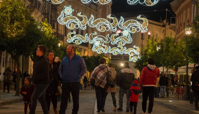Seré claro: a mí el alumbrado de este año me parece muy mejorable desde el punto de vista estético, sobre todo en calle Larga y en lo que han puesto delante del Cabildo Viejo, pero en ningún caso me planteo que se elimine. Durante la última década hemos presenciado varios factores que hacen que el alumbrado sea una inversión absolutamente incuestionable. Por un lado está el trillado tema del abandono poblacional del centro y la diáspora de sus habitantes hacia zonas alejadas de la almendra medieval. Este hecho, que provoca la pérdida de la identificación de los jerezanos con su propio patrimonio y su propia historia, también ha traído una consecuencia no menos importante, como es el cambio en los hábitos de vida de la gente y su dependencia absoluta del vehículo privado hasta para ir a comprar el periódico. Y por toro lado, se ha cometido el tremendo error de favorecer descaradamente la implantación de megacentros comerciales donde antes iba un parque temático u otra cosa, incluso compitiendo con poblaciones vecinas para que se instalasen aquí esas marcas de relumbrón, regalándole grandes cantidades de metros cuadrados de suelo público, que después se llevan los beneficios privados a sus países originarios, como es normal.
