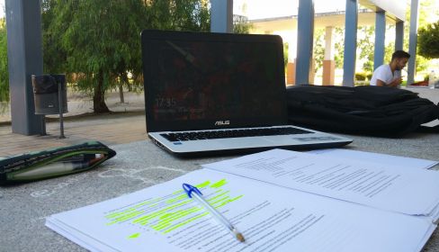 ¡Sorpresa! Una vez en el banco me doy cuenta de que tengo que enchufar mi portátil y como la UCA tiene medios de sobra y vela por mí, puedo hacer uso de dicha red eléctrica conectando mi portantil a la red de 220 voltios que ofrece el banco de hormigón en el que estoy sentado. Obviamente no puedo conectar mi portátil (estoy haciendo una crítica en tono irónico), así que improviso y adapto el horario que previamente había definido. Si me tocaba mirar unas diapositivas de convenios marítimos, pues estudio una asignatura prevista para mañana. ¡Es todo magnífico!