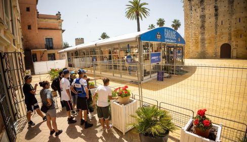 Pues el que quiera, desde la tarde del jueves ya puede disfrutar del Garage Motor Estrella Galicia 0.0, que este año, ante la dificultad –hablamos de tiempo– de montarlo en Cristina, justo después de la Semana Santa, ha sido enviado ni más ni menos que al Alcázar de Jerez... eh, sí, el Alcázar de Jerez, según entras, pues adentro.